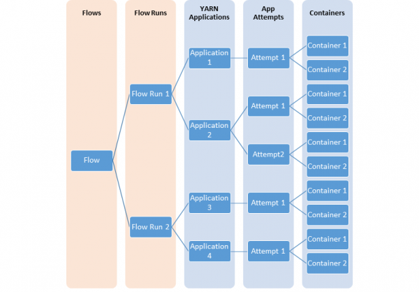 대부분의 사용자들은 위 그림과 같이 YARN 애플리케이션의 flows 혹은 논리적인 레벨 기준의 정보를 알기 원합니다. 이번 업그레이드를 통해 위의 flows 기준의 metrics 에 대한 aggregation 까지 지원을 하기 때문에 YARN 애플리케이션 들의 각 단계별 상태 정보를 수집/관리하고 최적화를 하는데 있어 매우 도움이 될 것으로 생각됩니다.