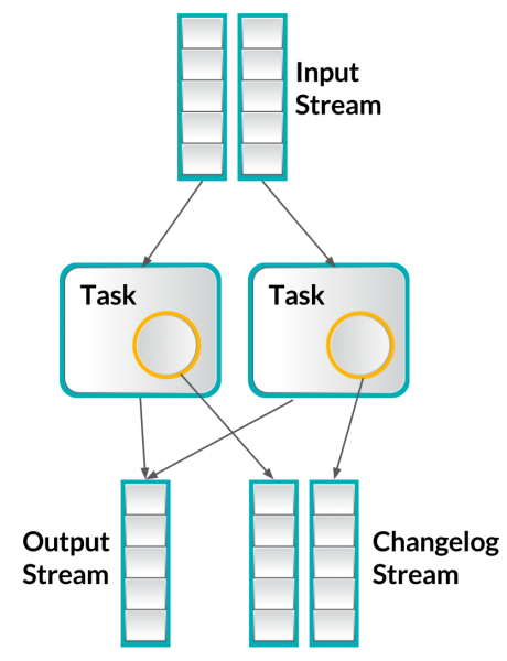 Samza 는 상태의 변화 로그 자체를 Kafka 에 넣을 수 있는 상태관리 오퍼레이터들을 가지고 있습니다. 필요하다면 상태정보를 Kafka 의 Topic 으로 재생성할 수 있으며, 로컬 저장소를 스토리지로 사용하는 key-value 저장소를 플러그인으로 사용할 수 있어서 모든 것을 Kafka 로 보내야 하는 것을 하지 않을수도 있습니다.
